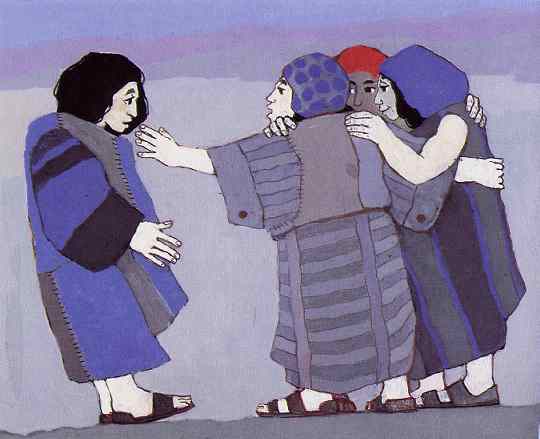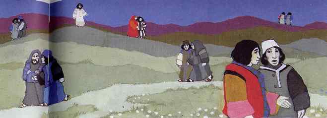 "Ich schicke euch jetzt zu allen Menschen im Land. Sagt ihnen: "Gott hat euch lieb. Macht euch bereit für ihn. Sein Königreich kommt." Später kommen die Jünger wieder zu Jesus zurück. Sie haben alles getan, so wie Jesus es gesagt hat.